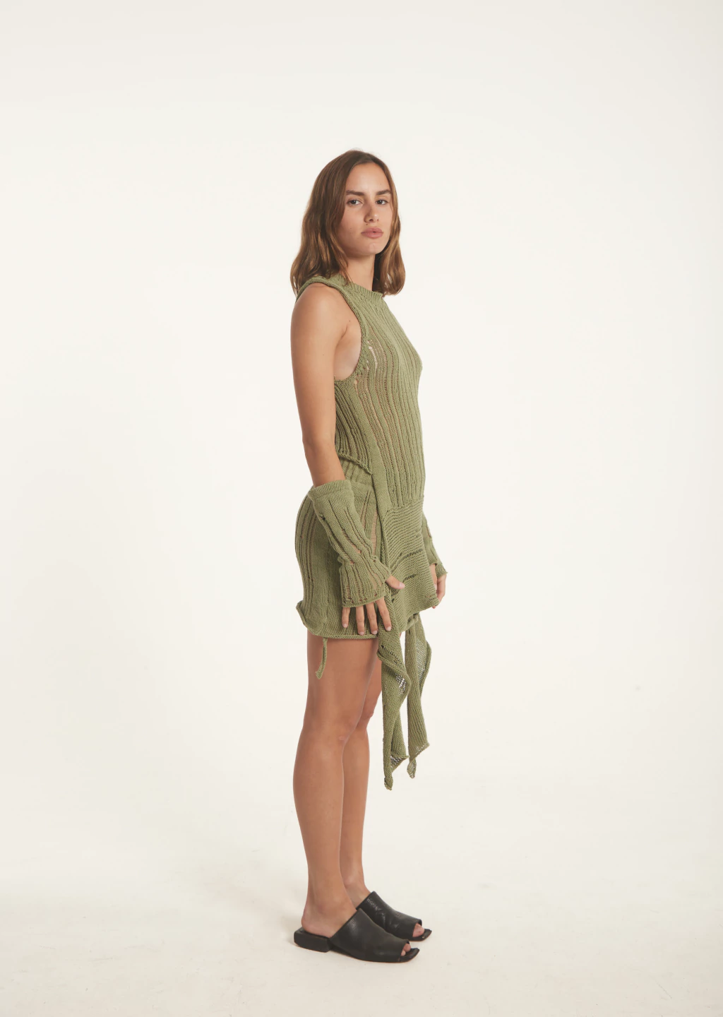 Largo total: 42 cm. Ancho total: 44 cm (se amolda a cuerpo). Tajo: 15 cm. Ancho cintura: 4 cm. Contorno de cintura: 72 cm.