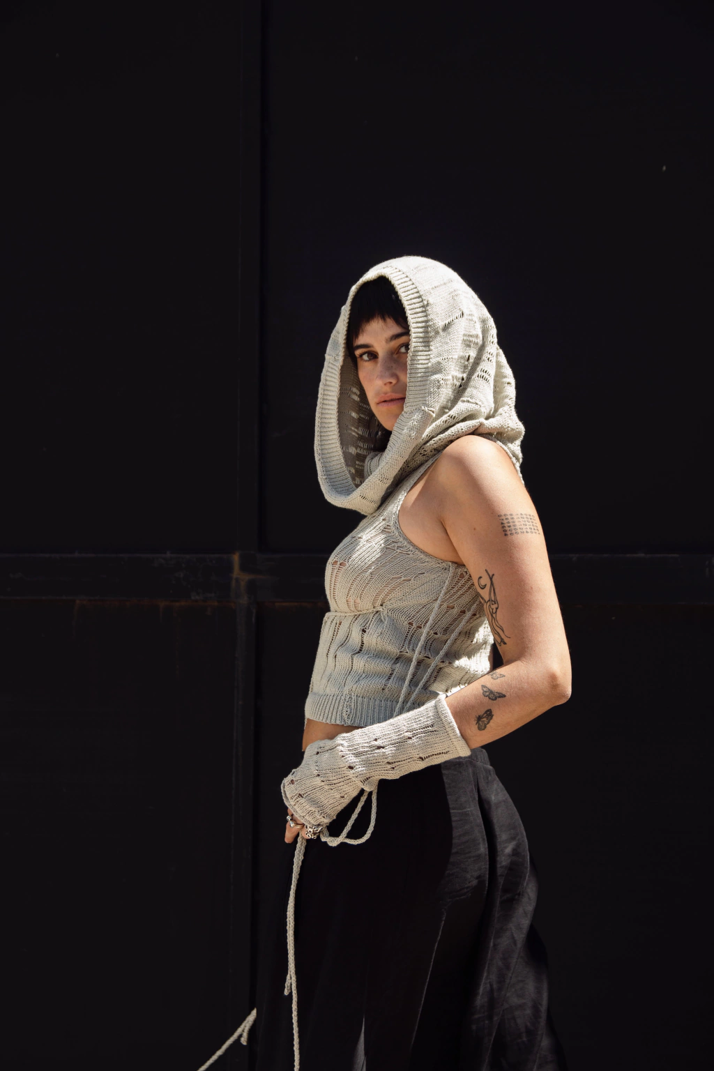 Top con capucha y tiras ajustables a gusto de cada uno. Con mitones en conjunto